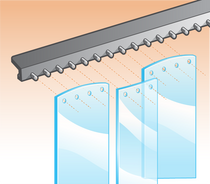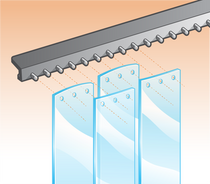 Our Medium Duty (MD) hardware is designed to easily handle medium duty use such as Pedestrian & Pallet Jack. It's made of an incredibly tough state-of-the-art injection molded polymer and can be used in the coldest environments. Measuring a full 1/4" thick, this track is among the thickest available on the market today. Each piece of track is 2' long and interlocks with the adjoining piece. This makes the installation process extremely easy as there are no long, akward pieces to have to deal with. This is especially helpful (and much more safe) if the installer requires the use of a ladder. If a section less than 2' is required, the size can be easliy adjusted in the field with the use of a hacksaw. The pre-drilled mounting holes are designed to accomodate fasteners up to 3/8" diameter and can be installed as a HEADER mount or JAMB (lintel) mount so there's no need to worry if you've ordered the correct unit. The design of our strip attachment pegs is in'geniously simple. There are no clips, push tabs, locking nuts, or retaining bars to lose or fail.